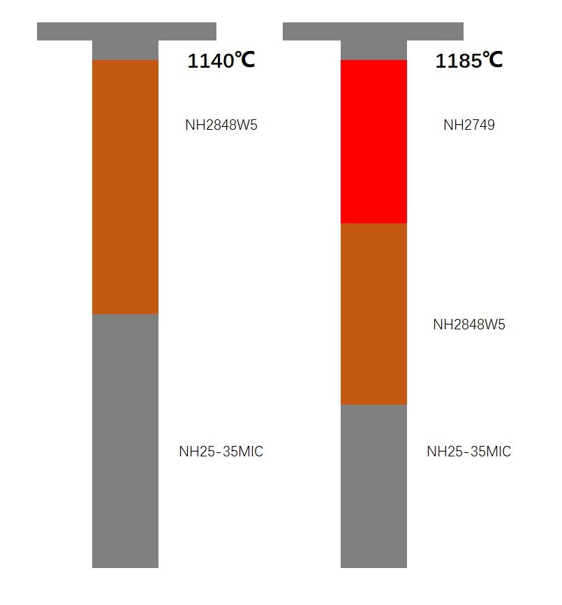 Due to its higher durability and stronger resistance to corrosion, carburizing, and oxidation at high temperatures, NH2749 is suitable for operating temperatures exceeding 1185°C