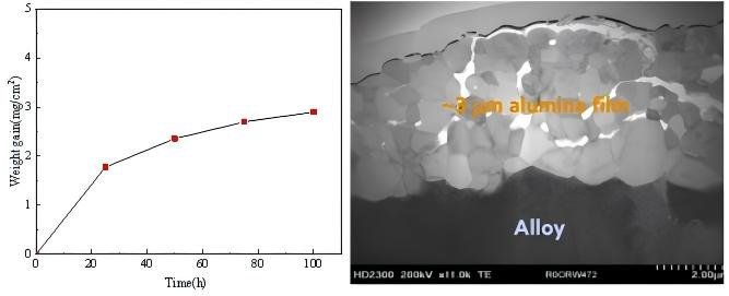 Oxidation weight gain curve exposed to air at 1100 ℃ for 100 hours