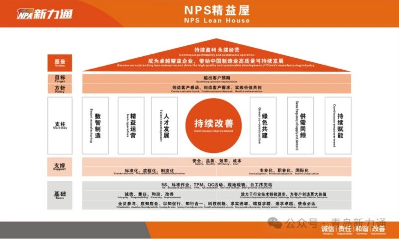 The NPS system takes the corporate culture of Xinlitong as the core driving force, and relies on basic tools such as 5S management, standard operation, TPM (comprehensive production and maintenance), QC activities, on-site management, and self-process completion to promote the integration of knowledge and action. Through the "standardization, process, and institutionalization" of management and the "specialization, professionalism, and internationalization" of the team, the NPS system focuses on safety, quality, efficiency and cost, and aims to achieve the goal of exceeding customer expectations through six pillars - digital intelligent manufacturing, lean operation, talent development, green co-construction, supply and demand at the same frequency, and continuous empowerment, so as to achieve the company's vision: sustainable profitability, sustainable operation, becoming an excellent lean enterprise, and driving the high-quality and sustainable development of China's manufacturing industry.